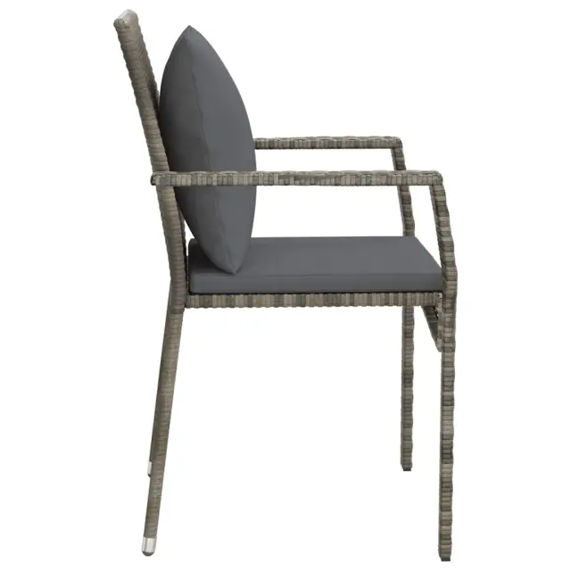 Ti vrtni stoli so odličen dodatek za vaš vrt in teraso, saj bodo naredili trajen vtis! Vzdržljiv material: Poli ratan je izjemno odporen material, ki je vzdržljiv v različnih vremenskih razmerah. Prav tako potrebuje malo vzdrževanja.Stabilen okvir: Prašno premazan jeklen okvir zagotavlja trdnost in stabilnost.Udobna izkušnja sedenja: Za vaše udobje so priložene dodatne blazine.Opomba:Vsakemu izdelku je priložen priročnik za enostavno sestavljanje.Da bi podaljšali življenjsko dobo vašega zunanjega pohištva, vam priporočamo, da ga zaščitite z vodoodporno prevleko.Barva: SivaBarva blazin: Temno sivaMaterial: PE ratan, jeklen okvir s prašnim premazomMaterial prevlek za blazine: Tkanina (100 % poliester)Dimenzije: 59 x 53,5 x 88 cm (Š x G x V)Velikost sedeža: 40 x 43 cm (Š x G)Višina sedeža od tal: 44 cmVišina naslonjal za roke, merjena od tal: 64,5 cmŠirina naslonjala za roke: 6 cmMere hrbtne blazine: 37 x 37 x 10 cm (Š x G x D)Mere sedežne blazine: 40 x 43 x 3 cm (Š x G x D)Maksimalna nosilnost (na sedež): 110 kgPaket vsebuje:2 x Vrtni stol2 x Blazina za hrbet2 x Sedežna blazina Največ 110 kg na sedež.