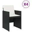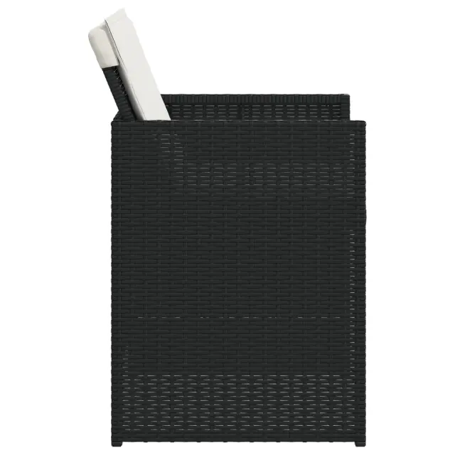Sprostite se in uživajte na prostem na teh udobnih vrtnih stolih! Vzdržljiv material: PE ratan, znan tudi kot poli ratan, je močan sintetični material, ki zahteva malo vzdrževanja in je videti kot naravni ratan. Je lahek, enostaven za čiščenje in se zaradi svoje vzdržljivosti in odpornosti na vremenske vplive pogosto uporablja za zunanje pohištvo.Udobno sedenje: To zunanje pohištvo z debelo oblazinjenimi blazinami zagotavlja udobno sedenje.Naslonjalo z loputo: Ti stoli imajo naslonjalo, ki ga je mogoče zložiti za kompaktno shranjevanje.Odstranljiva in pralna prevleka: Te blazine imajo odstranljive prevleke za enostavno pranje in vzdrževanje. Prevleke za blazine za stole imajo na zadnji strani zavihek za enostavno pritrditev na stole.Robusten in stabilen okvir: Prašno premazan jeklen okvir zagotavlja, da je vrtno pohištvo močno in stabilno za vsakodnevno uporabo na prostem.Dobro je vedeti:Če želite, da vaše zunanje pohištvo ostane lepo, vam priporočamo, da ga zaščitite z vodoodporno prevleko.Vrtni stol:Barva: ČrnaMaterial: PE ratan, jeklen okvir s prašnim premazomDimenzije: 50,5 x 54 x 79 cm (Š x G x V)Velikost sedišča: 45,5 x 38 cm (Š x G)Višina sedišča, merjena od tal: 43 cmVišina naslonjal za roke, merjena od tal: 63,5 cmMaksimalna nosilnost (na sedež): 110 kgUV-odpornoBlazina:Barva: Kremno belaMaterial prevleke: BlagoMaterial polnila: Pena, vlaknaDimenzije blazine za stol: 45,5 x 76 x 2,5 cm (Š x G x D)Potrebno sestavljanje: DaPaket vsebuje:4 x Vrtni stol4 x Blazina za stol z visokim naslonom s snemljivo in pralno prevleko Največ 110 kg na sedež. Zavedajte se nevarnosti odprtega ognja in drugih virov močne vročine v bližini izdelka.