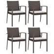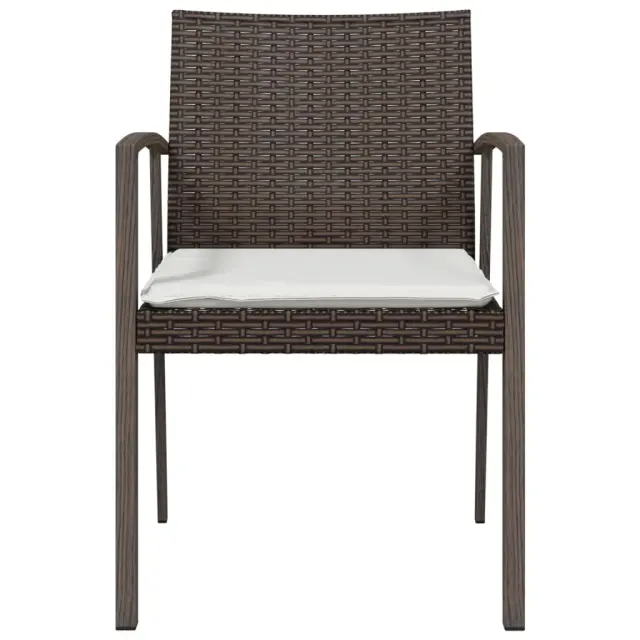Ti elegantni vrtni stoli so odličen dodatek za vaš vrt in teraso, saj bodo naredili trajen vtis! Vzdržljiv material: PE ratan, znan tudi kot poli ratan, je odporen na vremenske vplive in enostaven za čiščenje. Na zunaj ostane lep dolgo časa. Ponuja odlično kakovost, priročnost in estetski videz.Trden okvir: Jeklen okvir naredi vrtno sedežno garnituro trdno in stabilno za vsakodnevno uporabo na prostem.Udobno sedenje: Naslonjala za hrbet in roke zagotavljajo dodatno udobje pri sedenju na zunanjem stolu. Poleg tega debelo podložena blazina zagotavlja udobje med sedenjem. Opomba:Če želite, da vaše zunanje pohištvo ostane lepo, vam priporočamo, da ga zaščitite z vodoodporno prevleko.Vrtni stolBarva: RjavaMaterial: PE ratan, jekloDimenzije: 56,5 x 57 x 83 cm (Š x G x V)Višina sedeža od tal (brez blazine): 44 cmGlobina sedeža: 44,5 cmVišina naslonjala za roke, merjena od tal: 63 cmVišina naslonjala za hrbet od sedeža: 42 cmMaksimalna nosilnost: 110 kgBlazina:Barva: Kremno belaMaterial: Blago (100 % poliester)Material polnila: PenaDimenzije: 50 x 47 x 3,5 cm (D x Š x D)Potrebno sestavljanje: DaPaket vsebuje:4 x Vrtni stol4 x Blazina Maksimalna teža na sedež: 110 kg. Bodite pozorni na tveganje odprtega ognja in druge vire močne toplote v bližini izdelka.