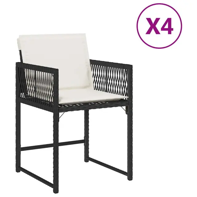 Vrtni stoli - Stol za vrt z blazinami 4 kosi črn poli ratan JS2225