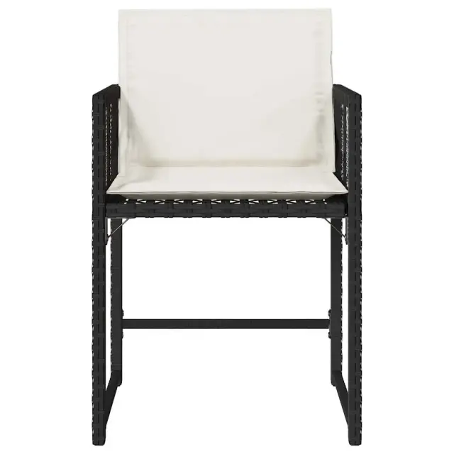 Sprostite se in uživajte na prostem na teh udobnih vrtnih stolih! Vzdržljiv material: PE ratan, znan tudi kot poli ratan, je močan sintetični material, ki zahteva malo vzdrževanja in je videti kot naravni ratan. Je lahek, enostaven za čiščenje in se zaradi svoje vzdržljivosti in odpornosti na vremenske vplive pogosto uporablja za zunanje pohištvo.Udobno sedenje: To zunanje pohištvo z debelo oblazinjenimi blazinami zagotavlja udobno sedenje.Naslonjalo z loputo: Ti stoli imajo naslonjalo, ki ga je mogoče zložiti za kompaktno shranjevanje.Odstranljiva in pralna prevleka: Te blazine imajo odstranljive prevleke za enostavno pranje in vzdrževanje. Prevleke za blazine za stole imajo na zadnji strani zavihek za enostavno pritrditev na stole.Robusten in stabilen okvir: Prašno premazan jeklen okvir zagotavlja, da je vrtno pohištvo močno in stabilno za vsakodnevno uporabo na prostem. Dobro je vedeti:Če želite, da vaše zunanje pohištvo ostane lepo, vam priporočamo, da ga zaščitite z vodoodporno prevleko.Vrtni stol:Barva: ČrnaMaterial: PE ratan, jeklen okvir s prašnim premazomDimenzije: 50,5 x 54 x 79 cm (Š x G x V)Velikost sedišča: 45,5 x 38 cm (Š x G)Višina sedišča, merjena od tal: 43 cmVišina naslonjal za roke, merjena od tal: 63,5 cmMaksimalna nosilnost (na sedež): 110 kgUV-odpornoBlazina:Barva: Kremno belaMaterial prevleke: Tkanina (100 % poliester)Material polnila: PenaDimenzije blazine za stol: 76 x 46 x 2 cm (D x Š x D)Potrebno sestavljanje: Da Paket vsebuje:4 x Vrtni stol4 x Blazina za stol z visokim naslonom s snemljivo in pralno prevleko