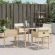 Sprostite se in uživajte na prostem na teh udobnih vrtnih stolih! Vzdržljiv material: PE ratan, znan tudi kot poli ratan, je močan sintetični material, ki zahteva malo vzdrževanja in je videti kot naravni ratan. Je lahek, enostaven za čiščenje in se zaradi svoje vzdržljivosti in odpornosti na vremenske vplive pogosto uporablja za zunanje pohištvo.Udobno sedenje: To zunanje pohištvo z debelo oblazinjenimi blazinami zagotavlja udobno sedenje.Naslonjalo z loputo: Ti stoli imajo naslonjalo, ki ga je mogoče zložiti za kompaktno shranjevanje.Odstranljiva in pralna prevleka: Te blazine imajo odstranljive prevleke za enostavno pranje in vzdrževanje. Prevleke za blazine za stole imajo na zadnji strani zavihek za enostavno pritrditev na stole.Robusten in stabilen okvir: Prašno premazan jeklen okvir zagotavlja, da je vrtno pohištvo močno in stabilno za vsakodnevno uporabo na prostem. Dobro je vedeti:Če želite, da vaše zunanje pohištvo ostane lepo, vam priporočamo, da ga zaščitite z vodoodporno prevleko.Vrtni stol:Barva: BežMaterial: PE ratan, jeklen okvir s prašnim premazomDimenzije: 50,5 x 54 x 79 cm (Š x G x V)Velikost sedišča: 45,5 x 38 cm (Š x G)Višina sedišča, merjena od tal: 43 cmVišina naslonjal za roke, merjena od tal: 63,5 cmMaksimalna nosilnost (na sedež): 110 kgUV-odpornoBlazina:Barva: Kremno belaMaterial prevleke: Tkanina (100 % poliester)Material polnila: PenaDimenzije blazine za stol: 76 x 45,5 x 2 cm (D x Š x D)Potrebno sestavljanje: Da Paket vsebuje:4 x Vrtni stol4 x Blazina za stol z visokim naslonom s snemljivo in pralno prevleko Največ 110 kg na sedež. Zavedajte se nevarnosti odprtega ognja in drugih virov močne vročine v bližini izdelka.