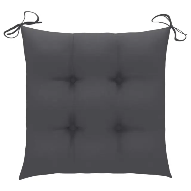 Ta komplet 3 lesenih vrtnih stolov se bo odlično podal na vaš vrt, teraso ali dvorišče. Omogočil vam bo sproščanje in klepetanje z družino in prijatelji ter uživanje v lepem vremenu. Ta kos pohištva iz izjemno trpežne tikovine je bil izpostavljen vremenskim vplivom, sušen v peči in nato fino brušen za pridobivanje gladkega izgleda. Tikovina je znana po svoji izjemni moči in odpornosti na vremenske vplive, zato je izmed vseh vrst lesa najbolj primerna za vrtno pohištvo. Tikovina je popolna izbira, če želite kupiti dolgotrajen kos vrtnega pohištva. Brušena površina je preprosta za čiščenje z vlažno krpo. Zunanji stoli so tudi lahki, zato so popolnoma fleksibilni in preprosti za premikanje. Lesene stole se lahko zloži za prihranek prostora, ko niso v uporabi. Debelo podložene blazine za sedeže zagotavljajo dodatno udobje med sedenjem.Barva blazin: AntracitnaMaterial: Trdna brušena tikovina s premazom na vodni osnoviMaterial blazine: 100 % poliesterDimenzije: 55 x 60 x 89 cm (Š x G x V)Širina sedeža: 45 cmGlobina sedeža: 37 cmVišina sedeža od tal: 45 cmVišina naslonjala za roke, merjena od tal: 66 cmDimenzije blazine: 40 x 40 x 7 cm (D x Š x D)Z naslonjali za rokeZložljivo, za lažje shranjevanjePaket vsebuje:3 x Vrtni stol z blazino1 x Dodatna blazina Največ 110 kg na sedež.