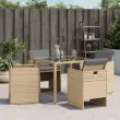 Sprostite se in uživajte na prostem na teh udobnih vrtnih stolih! Vzdržljiv material: PE ratan, znan tudi kot poli ratan, je močan sintetični material, ki zahteva malo vzdrževanja in je videti kot naravni ratan. Je lahek, enostaven za čiščenje in se zaradi svoje vzdržljivosti in odpornosti na vremenske vplive pogosto uporablja za zunanje pohištvo.Udobno sedenje: To zunanje pohištvo z debelo oblazinjenimi blazinami zagotavlja udobno sedenje.Naslonjalo z loputo: Ti stoli imajo naslonjalo, ki ga je mogoče zložiti za kompaktno shranjevanje.Odstranljiva in pralna prevleka: Te blazine imajo odstranljive prevleke za enostavno pranje in vzdrževanje. Prevleke za blazine za stole imajo na zadnji strani zavihek za enostavno pritrditev na stole.Robusten in stabilen okvir: Prašno premazan jeklen okvir zagotavlja, da je vrtno pohištvo močno in stabilno za vsakodnevno uporabo na prostem. Dobro je vedeti:Če želite, da vaše zunanje pohištvo ostane lepo, vam priporočamo, da ga zaščitite z vodoodporno prevleko.Vrtni stol:Barva: Mešano bežMaterial: PE ratan, jeklen okvir s prašnim premazomDimenzije: 50,5 x 54 x 79 cm (Š x G x V)Velikost sedišča: 45,5 x 38 cm (Š x G)Višina sedišča, merjena od tal: 43 cmVišina naslonjal za roke, merjena od tal: 63,5 cmMaksimalna nosilnost (na sedež): 110 kgUV-odpornoBlazina:Barva: Svetlo sivaMaterial prevleke: Tkanina (100 % poliester)Material polnila: PenaDimenzije blazine za stol: 76 x 46 x 2 cm (D x Š x D)Potrebno sestavljanje: Da Paket vsebuje:4 x Vrtni stol4 x Blazina za stol z visokim naslonom s snemljivo in pralno prevleko Največ 110 kg na sedež.