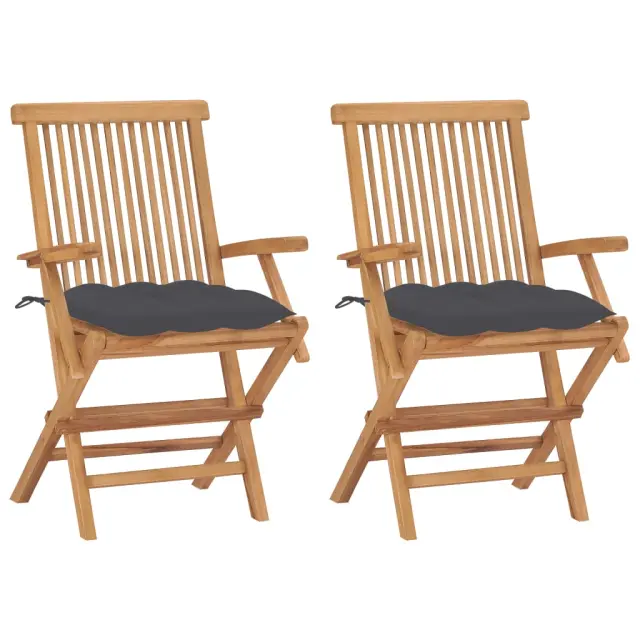 Vrtni stoli - Stol za vrt z antracitnimi blazinami 2 kosa trdna tikovina JS2068