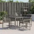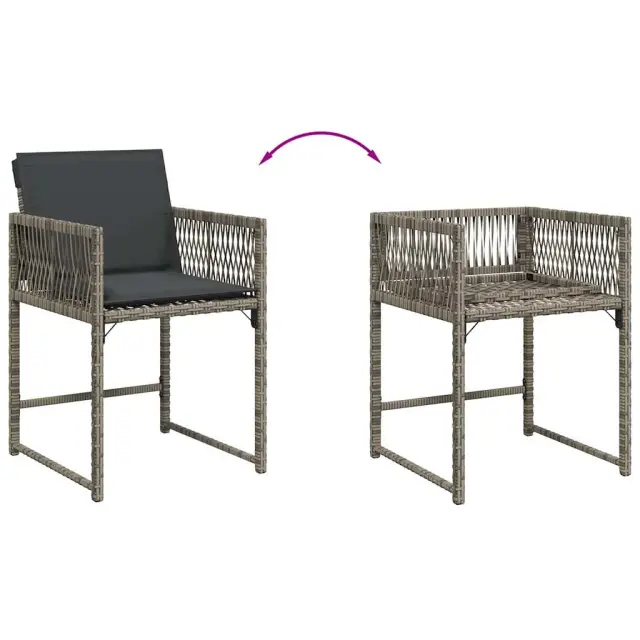Sprostite se in uživajte na prostem na teh udobnih vrtnih stolih! Vzdržljiv material: PE ratan, znan tudi kot poli ratan, je močan sintetični material, ki zahteva malo vzdrževanja in je videti kot naravni ratan. Je lahek, enostaven za čiščenje in se zaradi svoje vzdržljivosti in odpornosti na vremenske vplive pogosto uporablja za zunanje pohištvo.Udobno sedenje: To zunanje pohištvo z debelo oblazinjenimi blazinami zagotavlja udobno sedenje.Naslonjalo z loputo: Ti stoli imajo naslonjalo, ki ga je mogoče zložiti za kompaktno shranjevanje.Odstranljiva in pralna prevleka: Te blazine imajo odstranljive prevleke za enostavno pranje in vzdrževanje. Prevleke za blazine za stole imajo na zadnji strani zavihek za enostavno pritrditev na stole.Robusten in stabilen okvir: Prašno premazan jeklen okvir zagotavlja, da je vrtno pohištvo močno in stabilno za vsakodnevno uporabo na prostem. Dobro je vedeti:Če želite, da vaše zunanje pohištvo ostane lepo, vam priporočamo, da ga zaščitite z vodoodporno prevleko.Vrtni stol:Barva: SivaMaterial: PE ratan, jeklen okvir s prašnim premazomDimenzije: 50,5 x 54 x 79 cm (Š x G x V)Velikost sedišča: 45,5 x 38 cm (Š x G)Višina sedišča, merjena od tal: 43 cmVišina naslonjal za roke, merjena od tal: 63,5 cmMaksimalna nosilnost (na sedež): 110 kgUV-odpornoBlazina:Barva: Temno sivaMaterial prevleke: Tkanina (100 % poliester)Material polnila: PenaDimenzije blazine za stol: 76 x 46 x 2 cm (D x Š x D)Potrebno sestavljanje: Da Paket vsebuje:4 x Vrtni stol4 x Blazina za stol z visokim naslonom s snemljivo in pralno prevleko