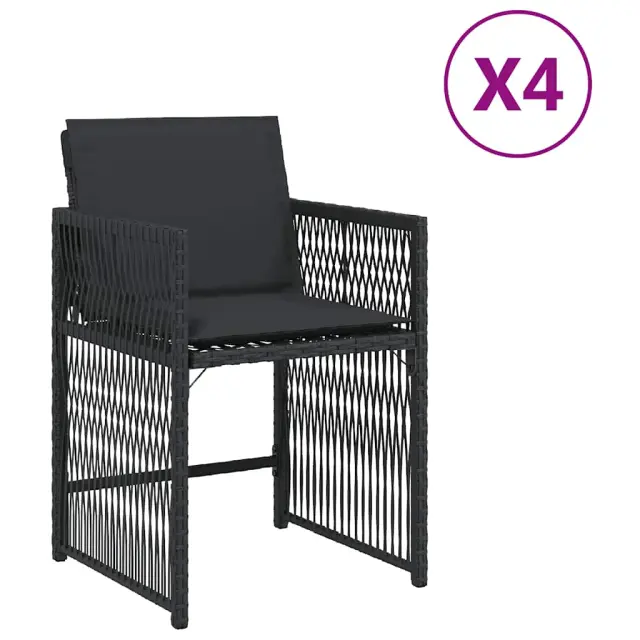 Vrtni stoli - Stol za vrt z blazinami 4 kosi črn poli ratan JS2226