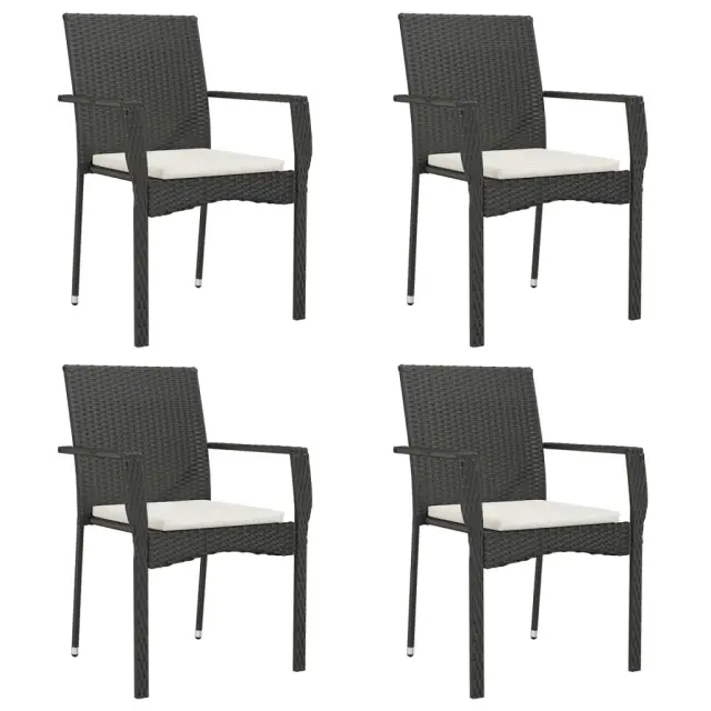 Vrtni stoli - Stol za vrt z blazinami 4 kosi poli ratan črni JS2241