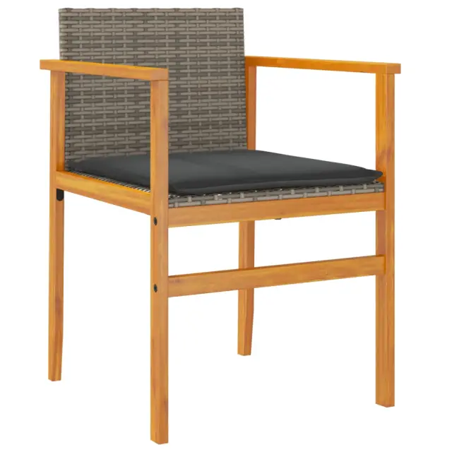 Vrtni stoli - Stol za vrt z blazinami 2 kosa siv poli ratan in trden les JS2154