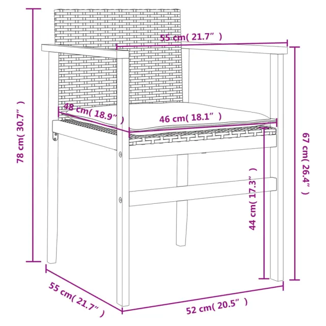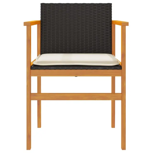 Vrtni stoli - Stol za vrt z blazinami 2 kosa črn poli ratan in trden les JS2119