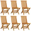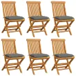 Vrtni stoli - Stol za vrt s sivimi blazinami 6 kosov trdna tikovina JS2017