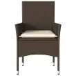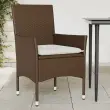 Sprostite se in uživajte na prostem na teh udobnih vrtnih stolih! Vzdržljiv material: PE ratan, znan tudi kot poli ratan, je močan sintetični material, ki zahteva malo vzdrževanja in je videti kot naravni ratan. Je lahek, enostaven za čiščenje in se zaradi svoje vzdržljivosti in odpornosti na vremenske vplive pogosto uporablja za zunanje pohištvo.Udobno sedenje: Vrtni sedež z naslonjalom za podporo hrbta in nizkimi nasloni za roke vam zagotavlja največje udobje.Prevleko je mogoče odstraniti in oprati: Te sedežne blazine imajo odstranljive prevleke za lažje pranje in vzdrževanje.Robusten in stabilen okvir: Prašno barvan jekleni okvir zagotavlja, da je vrtno pohištvo močno in stabilno za vsakodnevno uporabo na prostem. Dobro je vedeti:Če želite, da vaše zunanje pohištvo ostane lepo, vam priporočamo, da ga zaščitite z vodoodporno prevleko.Stol:Barva: RjavaMaterial: PE ratan, jeklen okvir s prašnim premazomDimenzije: 53 x 61 x 83 cm (Š x G x V)Velikost sedeža: 44 x 47 cm (Š x G)Višina sedeža, merjena od tal: 42 cmVišina naslonjal za roke, merjena od tal: 60 cmMaksimalna nosilnost (na sedež): 110 kgUV-odpornoBlazina:Barva: Kremno belaMaterial prevleke: Tkanina (100 % poliester)Polnilo sedežne blazine: PenaDimenzije sedežne blazine: 44/39 x 46 x 2,5 cm (Š x G x D)Potrebno sestavljanje: DaPaket vsebuje:2 x Vrtni stol2 x Sedežna blazina s snemljivo pralno prevleko Največ 110 kg na sedež. Zavedajte se nevarnosti odprtega ognja in drugih virov močne vročine v bližini izdelka.