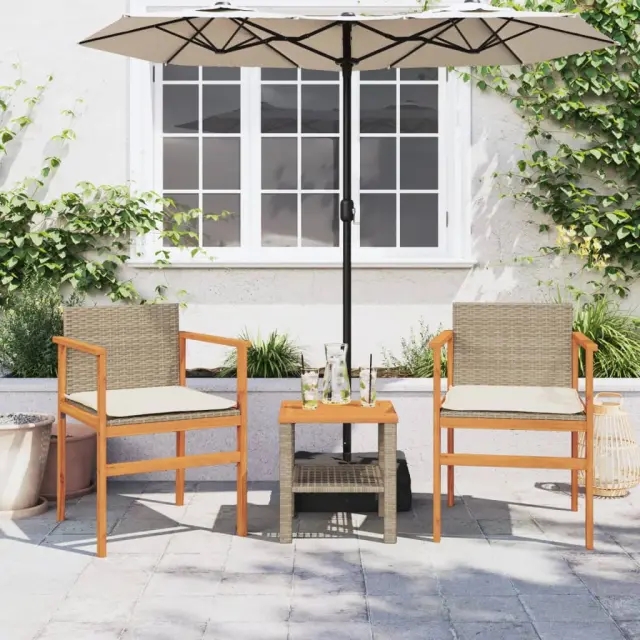 Vrtni stoli - Stol za vrt z blazinami 2 kosa bež poli ratan in trden les JS2107
