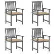 Vrtni stoli - Stol za vrt z blazinami 4 kosi sivi trden akacijev les JS2273