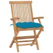 Vrtni stoli - Stol za vrt s svetlo modrimi blazinami 2 kosa trdna tikovina JS2026