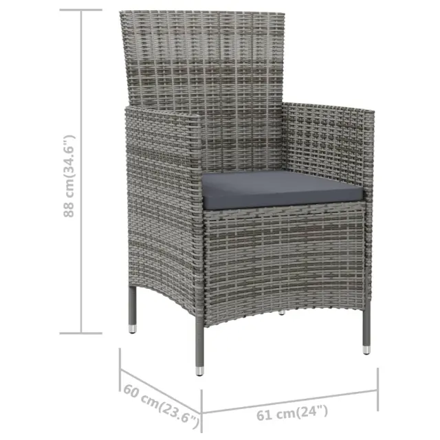 Vrtni stoli - Stol za vrt z blazinami 2 kosa poli ratan sive barve JS2136