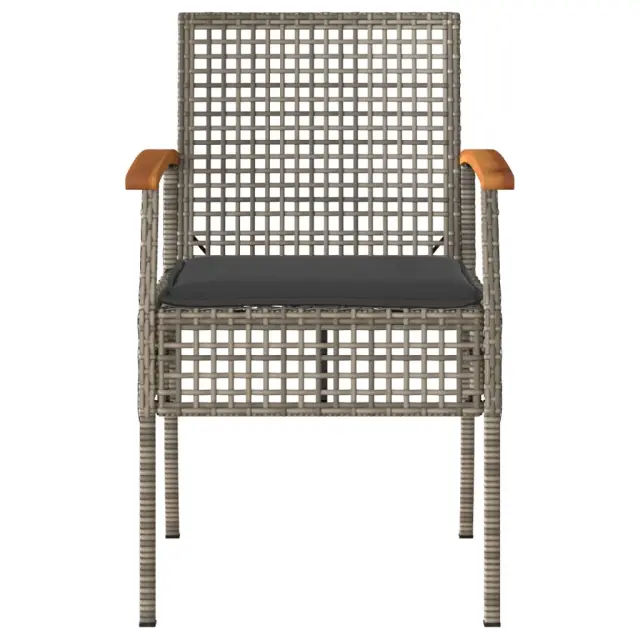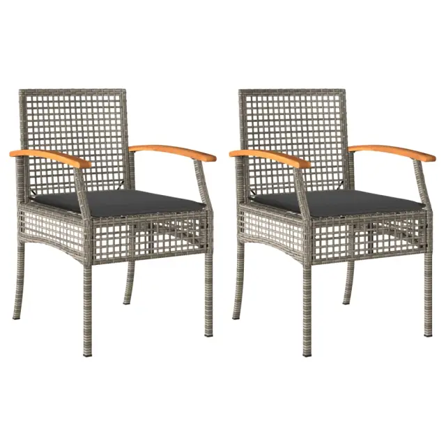 Vrtni stoli - Stol za vrt z blazinami 2 kosi siv poli ratan akacijev les JS2198
