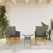 Vrtni stoli - Stol za vrt z blazinami 2 kosa siv poli ratan in trden les JS2156