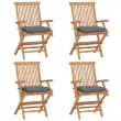 Vrtni stoli - Stol za vrt s sivimi blazinami 4 kosi trdna tikovina JS2015