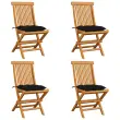 Vrtni stoli - Stol za vrt s črnimi blazinami 4 kosi trdna tikovina JS1934