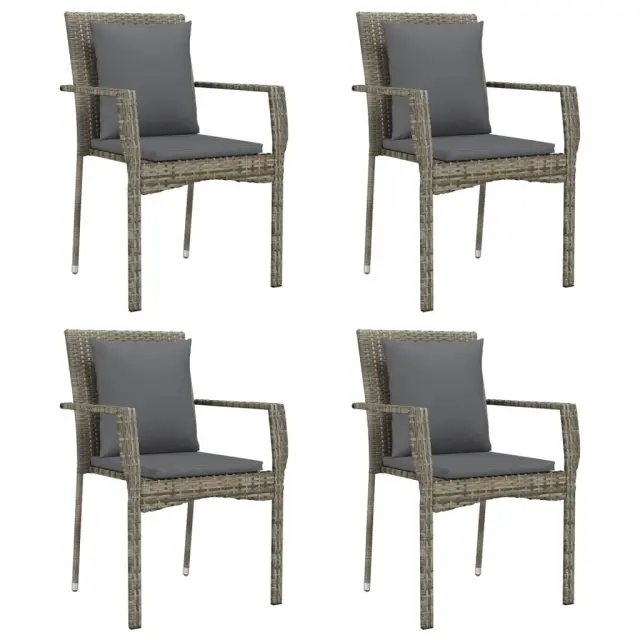 Vrtni stoli - Stol za vrt z blazinami 4 kosi poli ratan sive barve JS2250