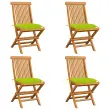 Vrtni stoli - Stol za vrt s svetlo zelenimi blazinami 4 kosi trdna tikovina JS2038