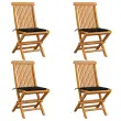 Vrtni stoli - Stol za vrt s črnimi blazinami 4 kosi trdna tikovina JS1935