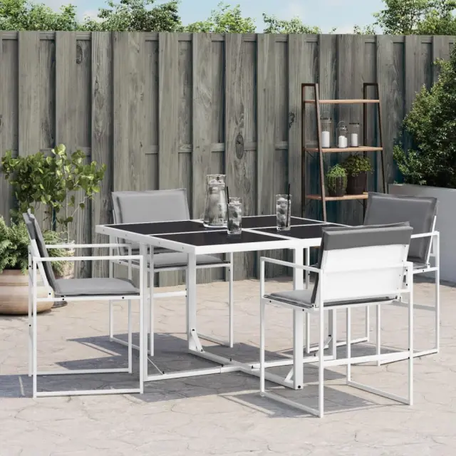 Vrtni stoli - Stol za vrt z blazinami 4 kosi belo jeklo in tekstilen JS2200