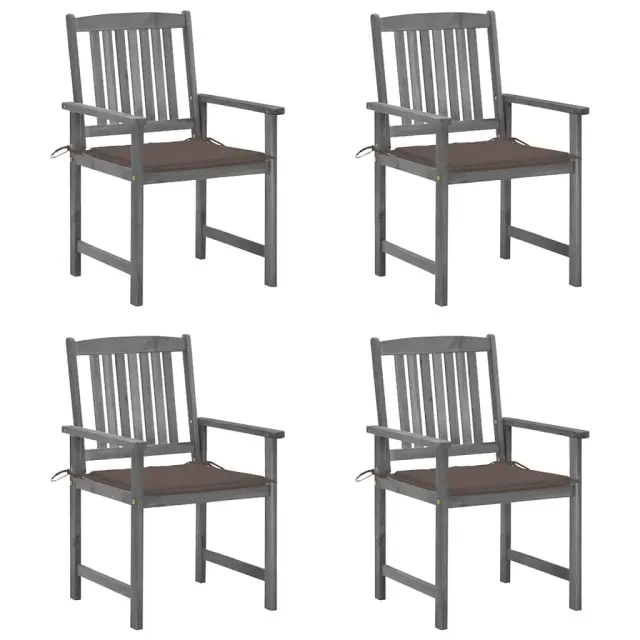 Vrtni stoli - Stol za vrt z blazinami 4 kosi sivi trden akacijev les JS2290