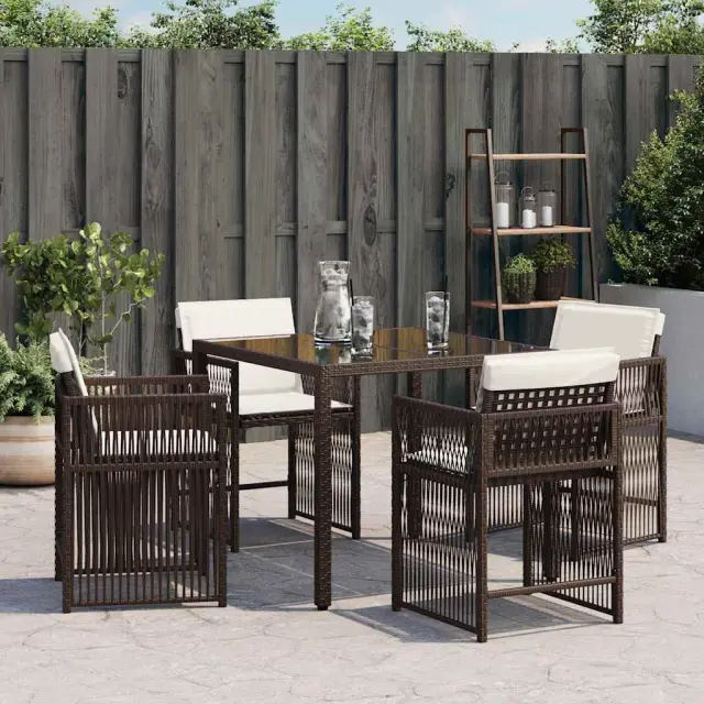 Vrtni stoli - Stol za vrt z blazinami 4 kosi rjav poli ratan JS2254