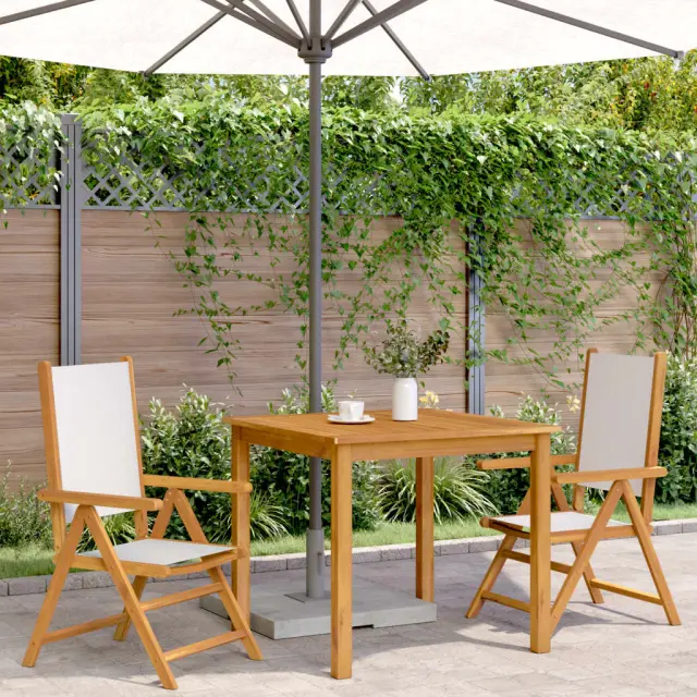 Vrtni Stoli - Stol za vrt 2 kosa kremno bel trden akacijev les in blago JS508