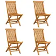 Vrtni stoli - Stol za vrt s kremno belimi blazinami 4 kosi trdna tikovina JS1988