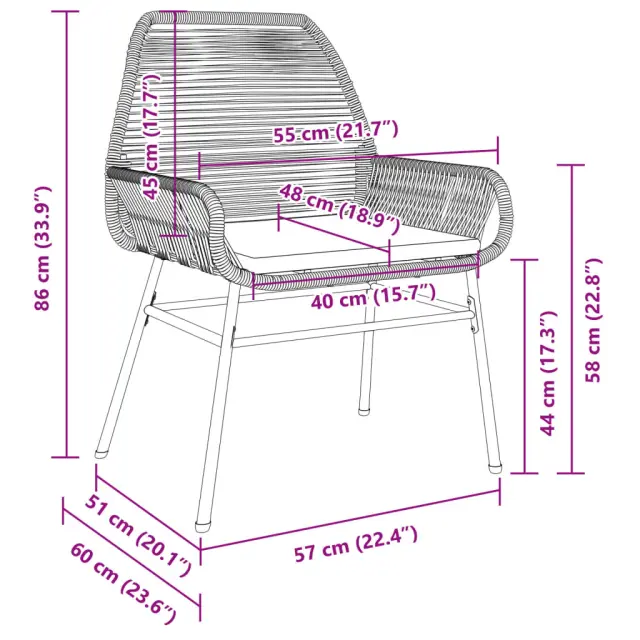 Vrtni stoli - Stol za vrt 2 kosa z blazinami siv poli ratan JS1404