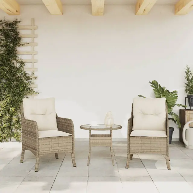 Vrtni Stoli - Stol za vrt z blazinami 2 kosa poli ratan bež JS733