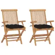 Vrtni stoli - Stol za vrt s črnimi blazinami 2 kosa trdna tikovina JS1926
