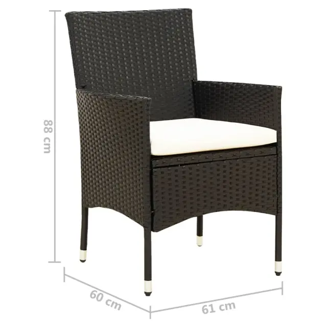 Vrtni Stoli - Stol za vrt z blazinami 2 kosa poli ratan črn JS743