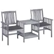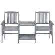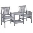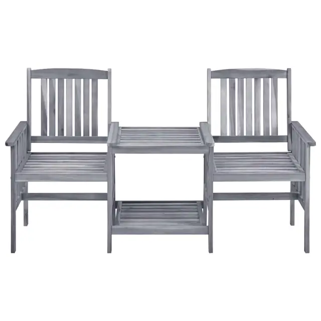 Privoščite si odlično skodelico čaja s to rustikalno čajno mizico. To bo resnično uporabniku prijazen in privlačen dodatek za vaš vrt ali teraso. Mizica in stoli so izdelani iz trdnega akacijevega lesa, ki zagotavlja odlično stabilnost in trdnost. Močna površina mize in spodnja polica sta idealni za odlaganje kozarcev, knjig in drugih majhnih stvari. Naslonjala za hrbet in roke zagotavljajo sproščeno sedenje. Blazine dodajajo udobje. Vsaka blazina ima dva kompleta vrvic za trdno pritrditev na bistro garnituro. Opomba: Če želite podaljšati življenjsko dobo svojega vrtnega pohištva, priporočamo redno čiščenje. Pohištva ne puščajte na prostem brez zaščite.Čiščenje: Uporabite blago milnicoShranjevanje: Če je mogoče, shranite v hladnem in suhem notranjem prostoru. Če bo izdelek shranjen zunaj, ga zaščitite z vodoodpornim pokrivalom. Po dežju ali snegu odstranite odvečno vodo ali sneg z ravnih površin. Omogočite zadosten pretok zraka, da preprečite poškodbe povezane z vlago.Barva: SivaBarva blazine: AntracitnaMaterial: Trden akacijev les s sivim premazomMaterial blazine: Blago (100 % poliester)Dimenzije: 159 x 61 x 92 cm (D x Š x V)Globina sedeža: 49 cmVišina naslonjala za roke, merjena od tal: 61 cmVišina sedeža, merjena od tal: 44 cmDimenzije blazine: 50 x 50 x 3 cm (D x Š x D)Potrebno sestavljanje: DaPaket vsebuje:1 x Dvojni stol z mizico2 x Blazina