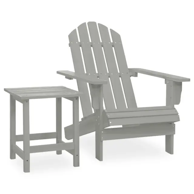Vrtni Stoli - Stol za vrt Adirondack z mizo trden les jelke siv JS598