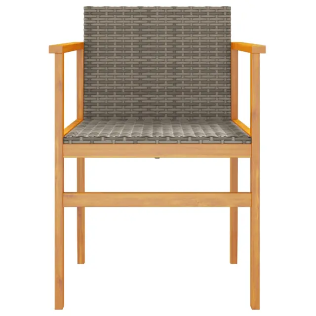 Vrtni stoli - Stol za vrt 2 kosa siv poli ratan in trden les JS1318