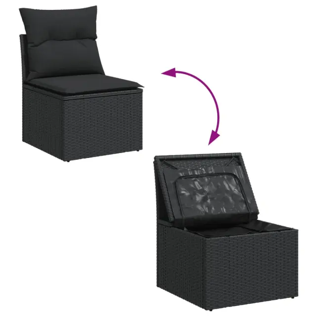 Vrtni Stoli - Stol za vrt brez naslonjal z blazinami črn poli ratan JS644
