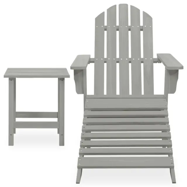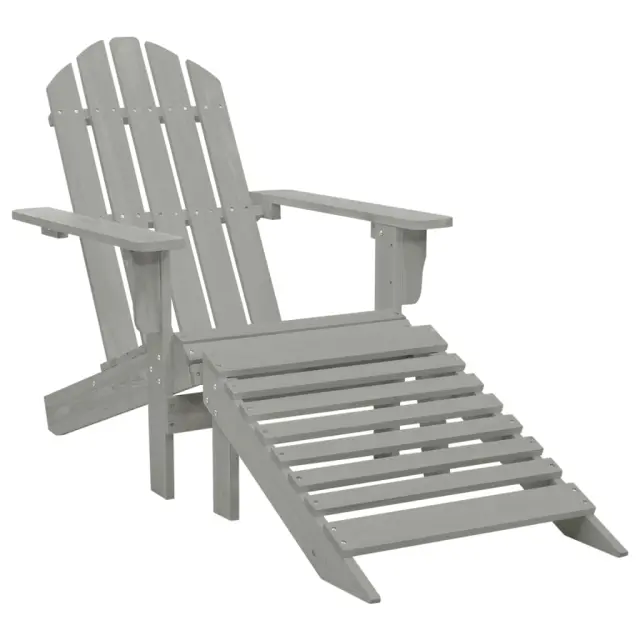 Vrtni Stoli - Stol za vrt Adirondack z naslonom za noge in mizo les jelke siv JS609