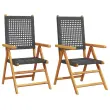 Vrtni stoli - Stol za vrt 2 kosa črn trden akacijev les in poli ratan JS1192