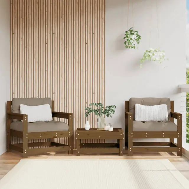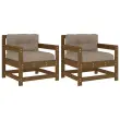Vrtni Stoli - Stol za vrt z blazinami 2 kosa medeno rjava trdna borovina JS730