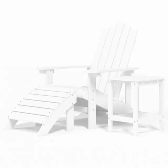 Vrtni Stoli - Stol za vrt Adirondack s stolčkom za noge in mizico HDPE bel JS576