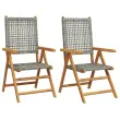 Vrtni stoli - Stol za vrt 2 kosa siv trden akacijev les in poli ratan JS1321