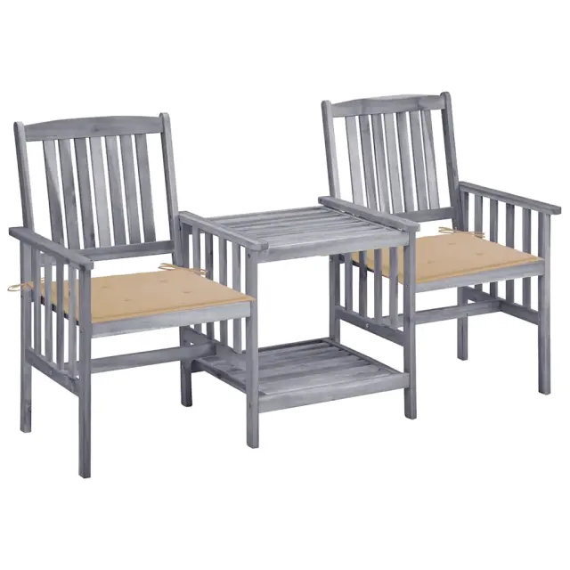 Vrtni stoli - Stol za vrt s čajno mizico in blazinami trden akacijev les JS1884