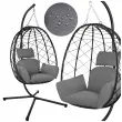 Privoščite si trenutek popolnega miru! Viseči stol v obliki jajčka združuje moderen dizajn in izjemno udobje. Zaradi samostoječega kovinskega stojala ga lahko postavite kamorkoli, brez potrebe po vrtanju v strop ali iskanju močnih vej. Košara je izdelana iz trpežnega umetnega ratana (tehnoratan), ki je odporen na vse vremenske vplive, medtem ko mehke, priložene blazine poskrbijo, da se boste počutili, kot bi lebdeli na oblaku. Z nosilnostjo do 150 kg je stol izjemno stabilen in varen za odrasle in otroke.