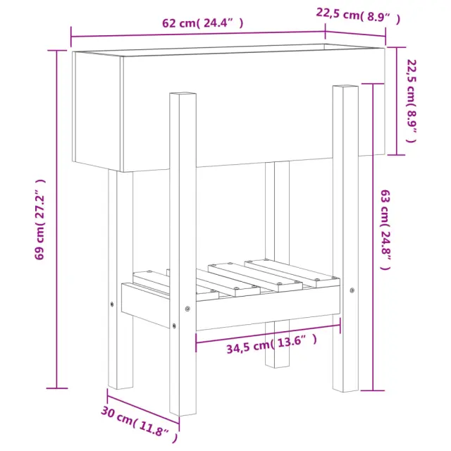 Vrtno cvetlično korito - Lonček za rože medeno rjavo 62x30x69 cm trdna borovina