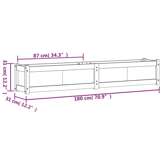 Vrtno cvetlično korito - Lonček za rože voščeno rjavo 180x31x31cm trdna borovina