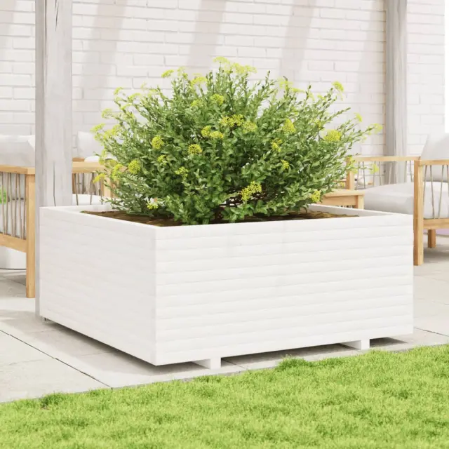 Vrtno cvetlično korito - Lonček za rože belo 110x110x49,5 cm trdna borovina